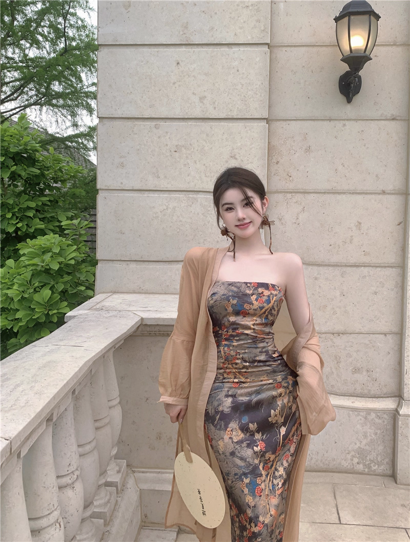 Đầm lụa hoa ôm body tinh tế, làm từ chất liệu lụa cao cấp, mang lại cảm giác mềm mịn, mát mẻ và thoải mái. Thiết kế ôm sát cơ thể và họa tiết hoa nhẹ nhàng, tôn lên vẻ đẹp nữ tính. Kèm theo áo khoác mỏng thanh lịch, bộ đồ này hoàn hảo cho các buổi tiệc cocktail, dạ hội, hay sự kiện đặc biệt. Cũng thích hợp để diện trong những buổi hẹn hò lãng mạn hoặc tiệc tối sang trọng.
